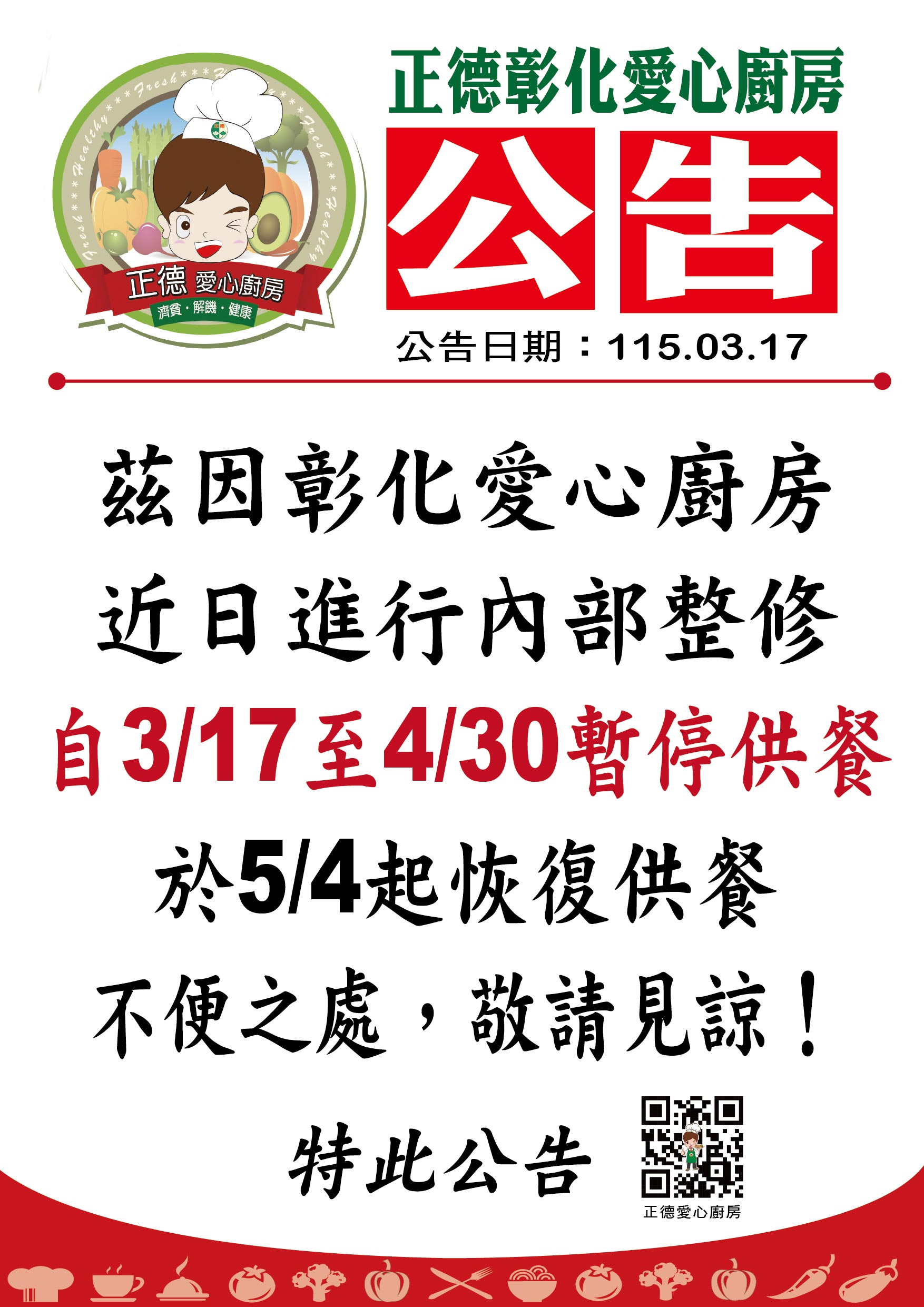 | 3 | 正德彰化愛心廚房 (105/12/18成立)
