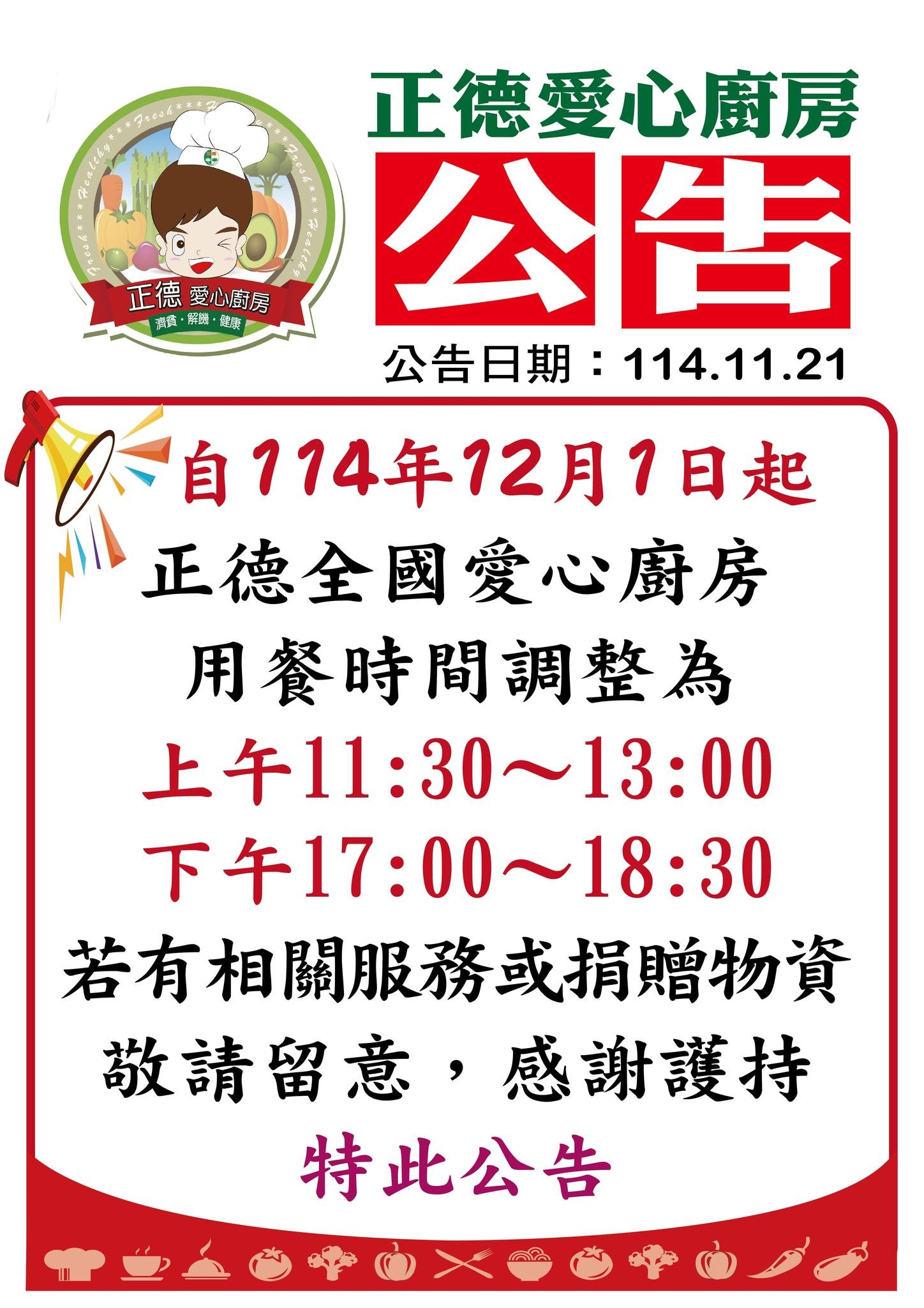 正德愛心廚房 供餐時間
