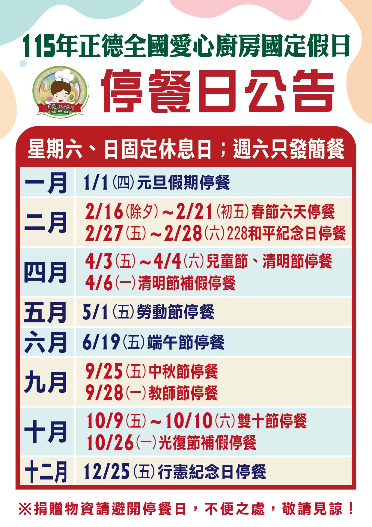114/11/12~115/1/3暫停供餐 |